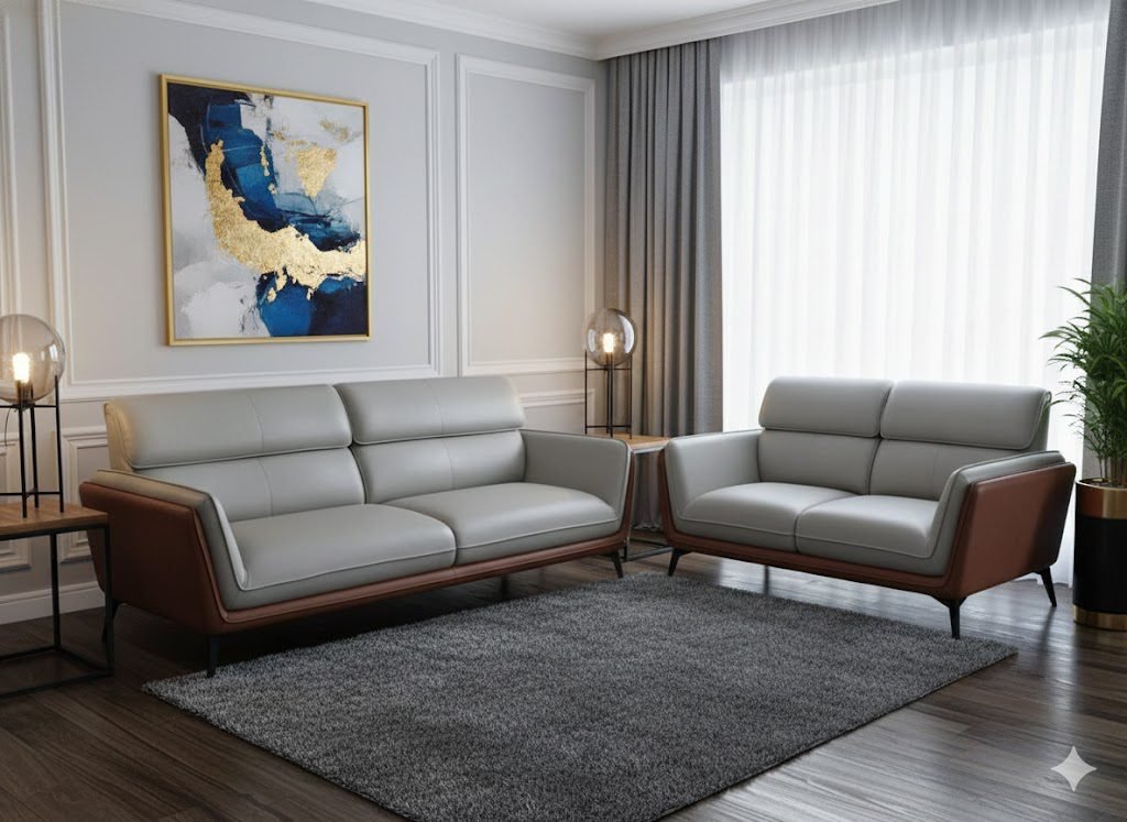 This 3+2 leatherette sofa set showcases a premium design with plush comfort and a luxurious feel, while its elegant dual-color finish adds a vibrant and sophisticated touch to your interiors. Crafted to make a bold style statement, it blends durability with contemporary elegance—transforming your living space into a refined and inviting retreat.